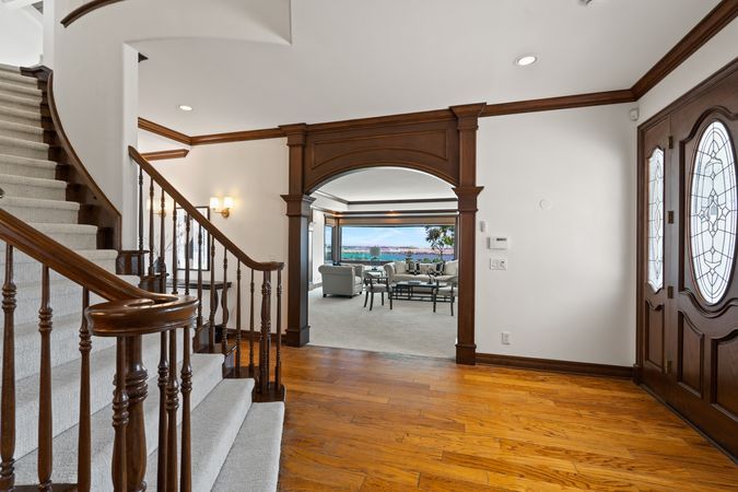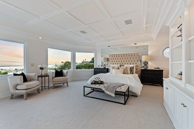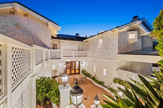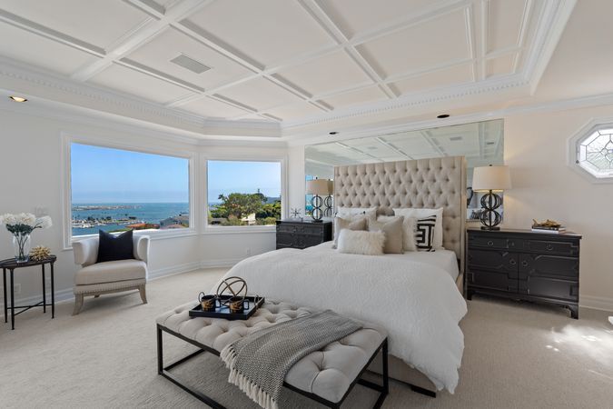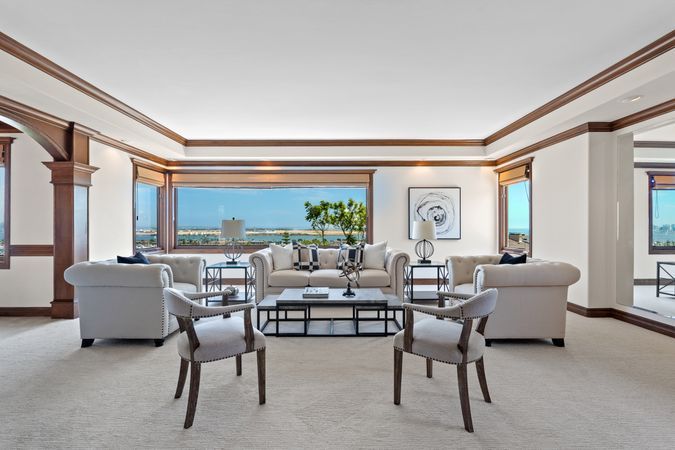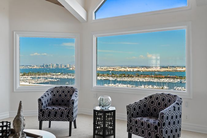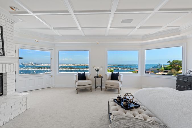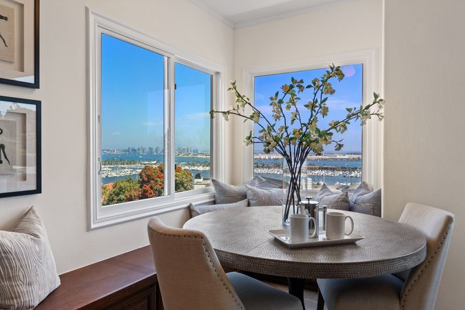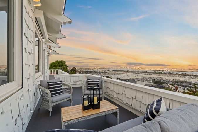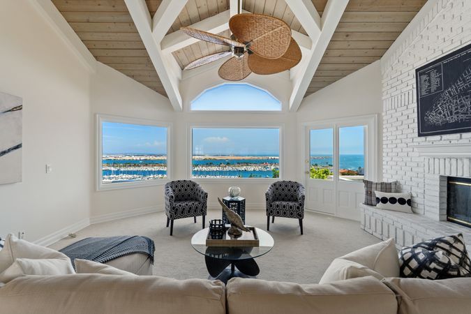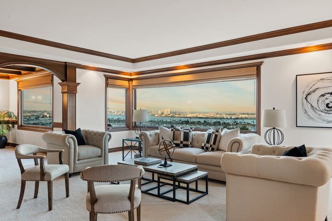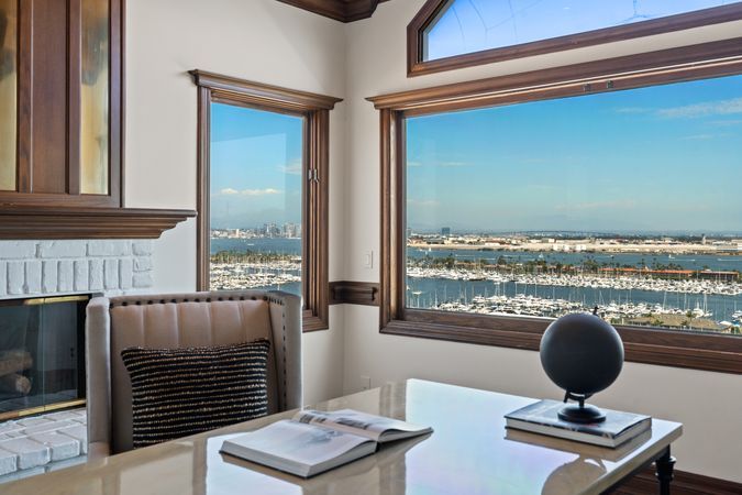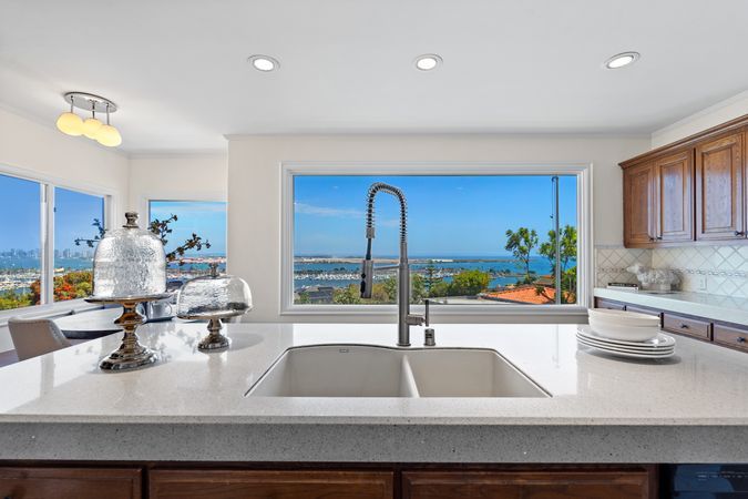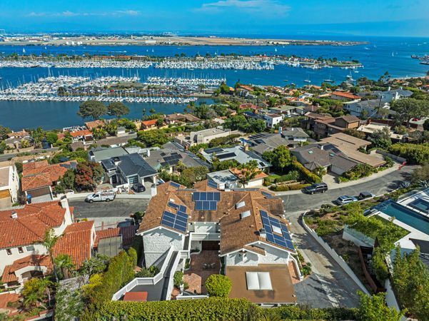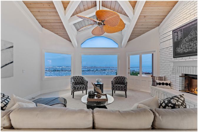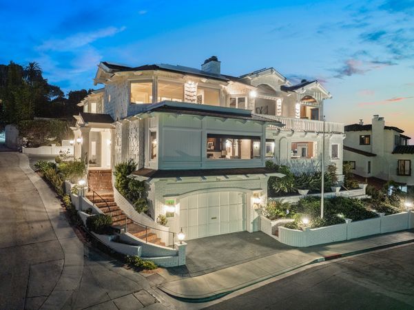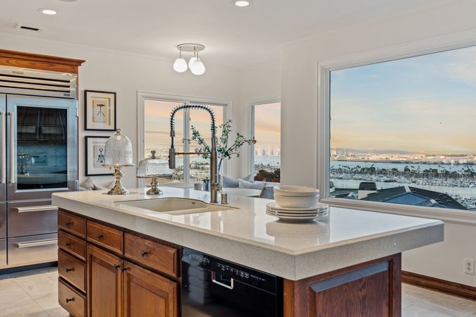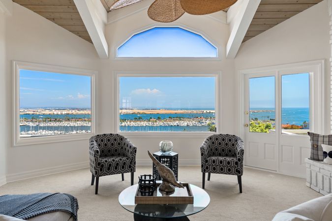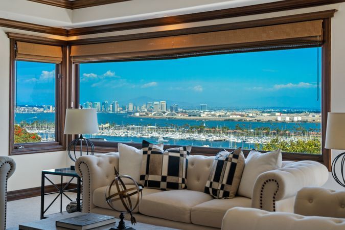 Experience breathtaking panoramic views that rank among the very best in Southern California. This sophisticated and elegant home is perfectly situated on a cul-de-sac in the scenic hills of Point Loma. The spacious living areas are accentuated by four fireplaces, creating a warm and inviting atmosphere. The gourmet kitchen, equipped with a Sub-Zero Pro series refrigerator, six burner Viking gas cooktop, and Wolf dual ovens, is perfect for the culinary enthusiast. Two entry-level and two upstairs bedrooms are all generously proportioned and designed to maximize privacy. An upper-level view office is ideal for working from home and to take in the ever-changing scene unfolding outside the large windows. The five-and-a-half bathrooms include a recently remodeled primary bath fit for royalty. Dual sinks with Dyson faucets / hand dryers, two private smart toilets, a steam shower, and a luxurious soaking tub complete the spa-like retreat. The home is designed to maximize the stunning views, with large windows in nearly every room that frame the picturesque scenery of the San Diego Bay, downtown skyline, Coronado, Mexico, and the Pacific. The expansive front and rear decks provide the perfect setting for outdoor entertaining or simply enjoying the mesmerizing views. This estate spans over 4,400 square feet of living space on an estimated 8,190-square-foot lot, providing ample space for both relaxation and entertainment. Don't miss the rare opportunity to own this exceptional Point Loma residence with unrivaled views!
